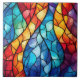 Ein faszinierendes, aus Glas inspiriertes abstraktes Design mit komplexen Mustern in einem Farbspektrum. Das Zusammenspiel von Rot, Blues, Grüntöne und Gelb schafft eine dynamische und harmonische Komposition, die an einen strahlenden Herbstbaum oder ein kaleidoskopisches Mosaik erinnert. Ideal für dekorative Keramik Fliesen, Trivets oder künstlerische Drucke, um Eleganz und Energie in jeden Raum zu bringen.