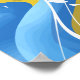 Ein dynamisches abstraktes Kunstwerk mit fließenden Formen in lebhaften Blau- und Gelbtönen. Sanft weiße gekrümmte Linien und ovale Akzente erzeugen ein Gefühl von Bewegung und Energie, das an Flüssigkeitswellen und Luftströmungen erinnert. Das Design verbindet coole und warme Kontraste, die Frische, Vitalität und einen modernen künstlerischen Stil hervorrufen.