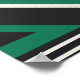 Dieses abstrakte Kunstwerk zeigt ein gepflegtes und strukturiertes geometrisches Design, das von Grün, Schwarz und Weiß dominiert wird. Die Komposition besteht aus diagonalen Linien und Dreiecken, die Bewegung und Tiefe erzeugen. Die grünen Elemente kontrastieren stark mit dem schwarz-weißen Hintergrund und machen das Design kühn und visuell einladend, mit einer minimalistischen, aber modernen Ästhetik.
