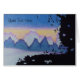 Die ursprüngliche Kunstillustrierung auf dieser großen Kunstkarte wird aus einem Aquarellbild hergestellt, das ich vor ein paar Jahren gemalt habe. Es macht mir wirklich Spaß, mit diesem illustrativen Bild zu arbeiten. Ich benutzte Farbstifte für dieses Bild von der Bergsonnenlandschaft, ich denke, die Farben sehen gerahmt aus von der massiven schwarzen Silhouette der Bäume im Vordergrund, das Bild hat ein wenig Märcheneffekt. Mit seinem Sonnenuntergang sieht diese farbenfrohe Landschaftskunst auf dieser Grußkarte sehr originell aus. Dies ist eine anpassbare Karte, Sie können sie mit Ihrem eigenen Text personalisieren.