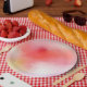 Abstrakte Kunstvorlage Rosa orange Gelb Pappteller