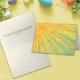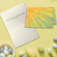 Eine Christliche Osterkarte, die die Auferstehung Jesu feiert. Eine gelbe und orangefarbene Sternexplosion auf aquablau strukturiertem Hintergrund, abstrakte Kunstmalerei. Auf der Innenseite dieser Karte ist der Bibelverse von John11:25-26 'Ich bin die Auferstehung und das Leben. Wer an mich glaubt, wird noch leben, selbst wenn er stirbt. Wer auch immer lebt und an mich glaubt, wird nie die.', der aus der World English Bible (WEB)-Version stammt. Kunstwerk der Künstlerin Catherine Sweetman.