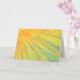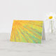 Eine Christliche Osterkarte, die die Auferstehung Jesu feiert. Eine gelbe und orangefarbene Sternexplosion auf aquablau strukturiertem Hintergrund, abstrakte Kunstmalerei. Auf der Innenseite dieser Karte ist der Bibelverse von John11:25-26 'Ich bin die Auferstehung und das Leben. Wer an mich glaubt, wird noch leben, selbst wenn er stirbt. Wer auch immer lebt und an mich glaubt, wird nie die.', der aus der World English Bible (WEB)-Version stammt. Kunstwerk der Künstlerin Catherine Sweetman.