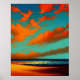 Abstrakte Landschaft mit aquamarin orangefarbenem Poster