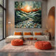 Mit dieser abstrakten Landschaftskunst, die eine strahlende Sonne, sanfte, geometrische Hügel und einen ruhigen, aus faszinierenden Kacheln bestehenden Weg bietet, sorgen Sie für Wärme und Tiefe. Die lebhaften Orange- und Grüntöne schaffen ein harmonisches Gleichgewicht, das ein Gefühl der Ruhe und Inspiration weckt. Diese einzigartige Verschmelzung von Natur und abstrakten Formen ist perfekt für die moderne Inneneinrichtung und verleiht jedem Zimmer einen lebendigen Brennpunkt. Diese Leinwand ist ideal für Kunstliebhaber und Naturliebhaber und verwandelt Mauern in faszinierende Erzählräume.