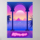 Ein Set abstraktes Landschaftsposter im Retro-Futurismus-Stil Retro-Welle und Cyberpunk Neon Farben, griechische Säulen und eine Statue