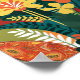 Ein lebendiges und abstraktes Gemälde mit einer Vielzahl von stilisierten abstrakten Formen. Das Kunstwerk ist voll mit fett gesättigten Farben, darunter dunkelgrüne, orangefarbene, gelbe, grüne und blaue Farbtöne. Die Formen haben große, übertriebene Blütenblätter mit komplizierten Mustern, während die Streifen in verschiedenen Formen und Größen dargestellt sind, wodurch ein üppiger, vielschichtiger Effekt entsteht. Der Hintergrund umfasst eine Mischung aus kräftigen Farben, Farbenwaschs und spielerischen Polka-Punkten, die Tiefe und Kontrast erhöhen. Der Gesamtstil ist modern, ausdrucksstark und voller Energie, mit einem starken Schwerpunkt auf Farbe und Form, flache Vektorgrafik, Graffiti, Acrylaquarell, Weißdrachenfliege, Briefmarke-Effekt-Collage, Rote Farbtöne, Paisleymuster, Weißkatze in der Ecke..