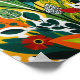 Ein lebendiges und abstraktes Gemälde mit einer Vielzahl von stilisierten abstrakten Formen. Das Kunstwerk ist voll mit fett gesättigten Farben, darunter dunkelgrüne, orangefarbene, gelbe, grüne und blaue Farbtöne. Die Formen haben große, übertriebene Blütenblätter mit komplizierten Mustern, während die Streifen in verschiedenen Formen und Größen dargestellt sind, wodurch ein üppiger, vielschichtiger Effekt entsteht. Der Hintergrund umfasst eine Mischung aus kräftigen Farben, Farbenwaschs und spielerischen Polka-Punkten, die Tiefe und Kontrast erhöhen. Der Gesamtstil ist modern, ausdrucksstark und voller Energie, mit einem starken Schwerpunkt auf Farbe und Form, flache Vektorgrafik, Graffiti, Acrylaquarell, Weißdrachenfliege, Briefmarke-Effekt-Collage, Rote Farbtöne, Paisleymuster, Weißkatze in der Ecke..