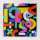 Farbiges abstraktes Muster mit Liebe in Wort, Augen, Tränen, Farbblöcken. Musterbeispiel mit hellen Farbblockierungen. Trendfarbenes geometrisches Muster aus Pop mit fetten Formen auf schwarz. Farbenfrohe Pop Kunstmuster mit auffallenden Formen. Abstrakte Farbmuster mit funky geometrischen Formen. Kunst, Muster, Hintergrund, abstrakt, Textur, Dekoration, Papier, Mode, Illustration, Party, Marketing, kreativ, nahtlos, geometrisch, Hipster, Stoff, bunt, modern, Formen, Elemente