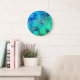Abstrakte Lila blaue Alkohol Tinte große Uhr entworfen von Nisha Prabhu CuteHomeGifts. Das ist eine wunderschöne, originelle abstrakte Alkoholtupfer-Kunst, die perfekt für den Strandbesuch geeignet ist. Diese Kunst ähnelt einem freien Geist, der seine Fähigkeit findet; sich mit dem Fluss der Zeit zu synchronisieren.