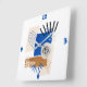 Abstrakte Linie Blau und Beige Quadratische Wanduhr