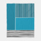 Diese mittelgroße Fleecedecke weist eine geometrische Gestaltung eines großen aquamarinen Rechtecks in der oberen links Ecke auf, aquamarinere Streifen in der oberen rechten Ecke, ein leichteres aquamarines Rechteck unter den Streifen und schwarze Linien über dem Grund. Wenn Ihnen das Design gefällt, aber andere Farben bevorzugen, dann schreiben Sie mir.