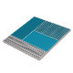 Diese Kachel hat ein geometrisches Design eines großen aquamarinen Rechtecks in der oberen links Ecke, dunklere aquamarine Streifen in der oberen rechten Ecke, ein leichteres aquamarines Rechteck unter den Streifen, und schwarze Linien über dem Grund. Wenn Ihnen das Design gefällt, aber andere Farben bevorzugen, dann schreiben Sie mir.