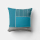 Dieses Kissen hat eine geometrische Gestaltung eines großen aquamarinen Rechtecks in der oberen links Ecke, dunklere aquamarine Streifen in der oberen rechten Ecke, ein leichteres, aquamarines Rechteck unter den Streifen, und schwarze Linien über dem Grund. Wenn Ihnen das Design gefällt, aber andere Farben bevorzugen, dann schreiben Sie mir.