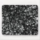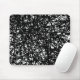 Ein Mauspad mit einem modernen abstrakten Design aus zufällig platzierten Vektorlinien, die eine interessante abstrakte Komposition erzeugen, die an eine Struktur oder ein Netzwerk erinnert.