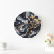 Abstrakte Marmormalerei in Navy Blue und Gold Große Wanduhr