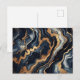 Abstrakte Marmormalerei in Navy Blue und Gold Postkarte