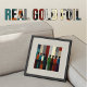 Ein Poster mit echter Goldfolie und ein abstraktes Gemälde menschlicher Silhouetten in verschiedenen Farben. Ein schöner Druck in Rot, Blau, Orange und Grün.