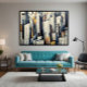 Spüren Sie den Puls der Stadt in diesem dynamischen Kunstwerk. Geometrische Formen und auffallende Kontraste erzeugen die vertikale Energie des Stadtlebens. Perfekt für zeitgenössische Räume ist dieses Stück eine Hommage an die moderne Architektur und den unerbittlichen Rhythmus der Metropole.