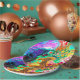 Lila, blaue, rote, gelbe, aquamarine, orangefarbene Digitalfotografie.