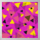 Ein abstraktes geometrisches modernes Kunstdesign mit dreieckigen Formen in Gelb und Schwarz auf einem lila Hintergrund mit hellem Licht.