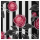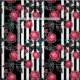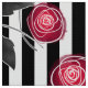 Abstrakte, moderne rote Rosen, schwarz gestreifte Stoff