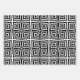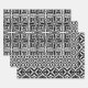 Set aus drei Packpapierblättern mit dekorativen Mustern. Jedes Muster weist geometrische Formen in Schwarz und Weiß auf.