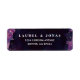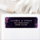 Personalisierte, schick schwarze und lila Rücksendeadressen-Aufkleber mit abstrakten lila Aquarellstrichen, Goldpunkten und einfachem, modernem Text. Perfekte Rücksendeadressen-Aufkleber für Hochzeitseinladungen in modernen Kunstmuseen und Kunstgalerien und zum Speichern der Terminkarten.