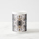 Das Originalmuster auf dieser Knochen-China-Tasse entstand aus einem Originalfoto von HomeWare von Muscheln. Die Muscheln des Konchs sind in Form und Farbe von Weiß mit Rosa bis Schwarz-Weiß-Streifen unterschiedlich. Das abstrakte Design der Muschel macht einen bunten, modernen Kunstausdruck.