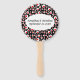 Dieser Handlüfter hat ein kräftiges abstraktes Muster roter Kreise in größeren weißen Kreisen auf schwarzem Hintergrund. Passen Sie Ihren Namen und Ihre Daten im weißen Oval mit der Vorlage an.