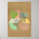 Die moderne Wandkunst zeichnet sich durch abstrakte Naturelemente (Blätter, Feder, Blume) auf kraftbraunem Hintergrund aus