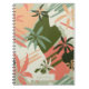 Abstrakte pastellfarbene Sommerpalmenmuster, Notizbuch. Notebook-Features, eine Single-Template-Textzeile für den Namen oder einen anderen Text auf der passenden beigen Beschriftung.