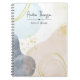 Abstraktes Pastel Watercolor Shapes Gold Foil Spiralheft, ideal für Innenarchitekten, Berater, Kunstdirektor, Profis oder Marketing Manager. Es zeichnet sich durch eine weiche blaue, pfirsichcremefarbene Aquarellform und einige goldene Folienstriche für ein elegantes Ambiente aus.