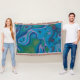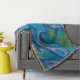 Hüllen Sie sich in ein Meer aus flüssiger Farbe. Dieses Design fängt die Essenz der Eleganz eines Pfaus durch eine abstrakte, psychedelische Linse ein. Intricate Wirbel aus Himmelblau, Türkis und Pflaume tanzen über den Stoff und schaffen einen hypnotischen visuellen Rhythmus. Ob über ein Sofa drapiert oder als Statement-Bettwäsche verwendet, bringt diese Decke einen Hauch von avantgardistischer Kunstfertigkeit und gemütlicher Sophistikation in Ihr Zuhause.