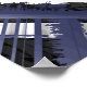 Ein modernes abstraktes Kunstwerk mit kühnen diagonalen Streifen in tiefblauen, schwarzen und weißen Farbtönen. Das Design verbindet saubere geometrische Linien mit rauen Pinselstrichtexturen und gestreiften Farbeffekten und schafft einen auffallenden Kontrast zwischen Ordnung und Chaos. Die überlappenden Streifen verleihen dem Stück Tiefe und Dimension und verleihen ihm ein dynamisches und dynamisches Gefühl.