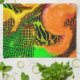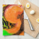 Digitale Pour-Malerei Orange, Schwarz, Bordeaux, Kalkgrün und Orange Herbstfarben abstrakte Digital-pour Malerei Kunst dekorative Küchenhandtücher.