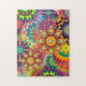 Wenn Sie eine Herausforderung, wenn es um Rätsel, dann ist diese sicher, dass Sie gefallen, oder treiben Sie verrückt! Ein abstraktes psychedelisches Design mit Mandalasen in hellen Gelbtönen, Kalkgrün, Elektroblau, Magenta und Orange.