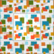 Dieser Stoff hat ein modernes Design von Rechtecken und Linien in den 70er Jahren Farben.