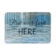 Diese humorvolle Badmatte ist mit unserem originalen abstrakten Foto einer Reflexion in einem See dekoriert. Der Text ist dunkelblau - er sagt "Nass Füße HIER setzen". Ein großartiges Geschenk für eine Hochzeit oder eine Hauserwärmung. Alle Rechte vorbehalten © 2015 Alan & Marcia Socolik.