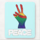 Ein abstraktes Gemälde mit den Farben des Regenbogens, mit einer farbenfrohen Kontur des Wortes Ruhe, von CherylsArt, wird auf individuellen Mousepads gedruckt. Ich hatte Spaß, meine eigene Hand zu benutzen, um dieses Design zu kreieren.