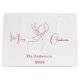 Weißer Hintergrund und ein abstrakter, roter Rentier. Personalisieren Sie Ihren Namen und fügen Sie ihn hinzu. Text; Frohe Weihnachten Perfekt sowohl für Geschenkverpackung als auch als Weihnachtsbeutel, goodiebag Gastgeschenk.
