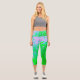 Abstrakte Retro-Blume in Lavendel und Kalkgrün Capri Leggings