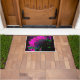 Abstrakte Retro-Blume in Rosa und Schwarz Fußmatte