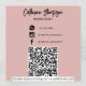 Diese Visitenkarte vereint Ästhetik, Funktionalität und Personalisierung - ein leistungsstarkes Tool, um einen bleibenden Eindruck verlassen. Die Vorderseite weist dynamische Pinselstriche in einer faszinierenden Palette aus schwarz, rosa und creme auf. Diese ausdrucksstarken Striche rufen Kreativität und Bewegung hervor und machen eine mutige visuelle Aussage. Die Karte ermöglicht eine vollständige Anpassung des Textes, sodass er den individuellen Vorlieben gerecht wird. Ob Schminkkünstler, Fotograf oder Unternehmer, Sie können den Inhalt an Ihre Markenidentität anpassen. Auf der anderen Seite verbindet sich ein QR-Code nahtlos mit Ihren Social-Media-Profilen und verbessert so die Vernetzungsmöglichkeiten. Social Media Handles begleiten den QR-Code und ermöglichen es den Empfängern, Sie online zu verfolgen.