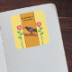Dieses viereckige Aufkleber-Buchzeichen hat eine schwarze Krähe, stehend auf einem Zweig mit zwei abstrakten Blume mit Blätter auf beiden Seiten. Gelbgoldgelber Hintergrund im Zentrum, umgeben von hellgelbem Hintergrund. Passen Sie Ihren Text mit den Vorlagen an.