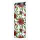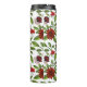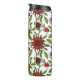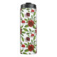 abstrakte rote Blume und grüne Blätter auf weißer Thermosbecher