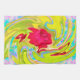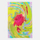 Abstrakte Rote Rose auf Gelb und Aqua Swirl Geschirrtuch
