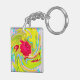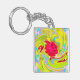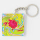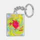 Abstrakte Rote Rose auf Gelb und Aqua Swirl Schlüsselanhänger