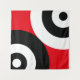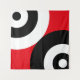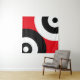 Abstrakte Kunst mit geometrischen, schwarz-weißen Formen auf Rot.