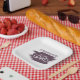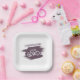 Diese Teller der Graduierungsparty haben den Text "Gratulation 2024 Grad" und sind mit lila, dunklen Pinselstrichen versehen.